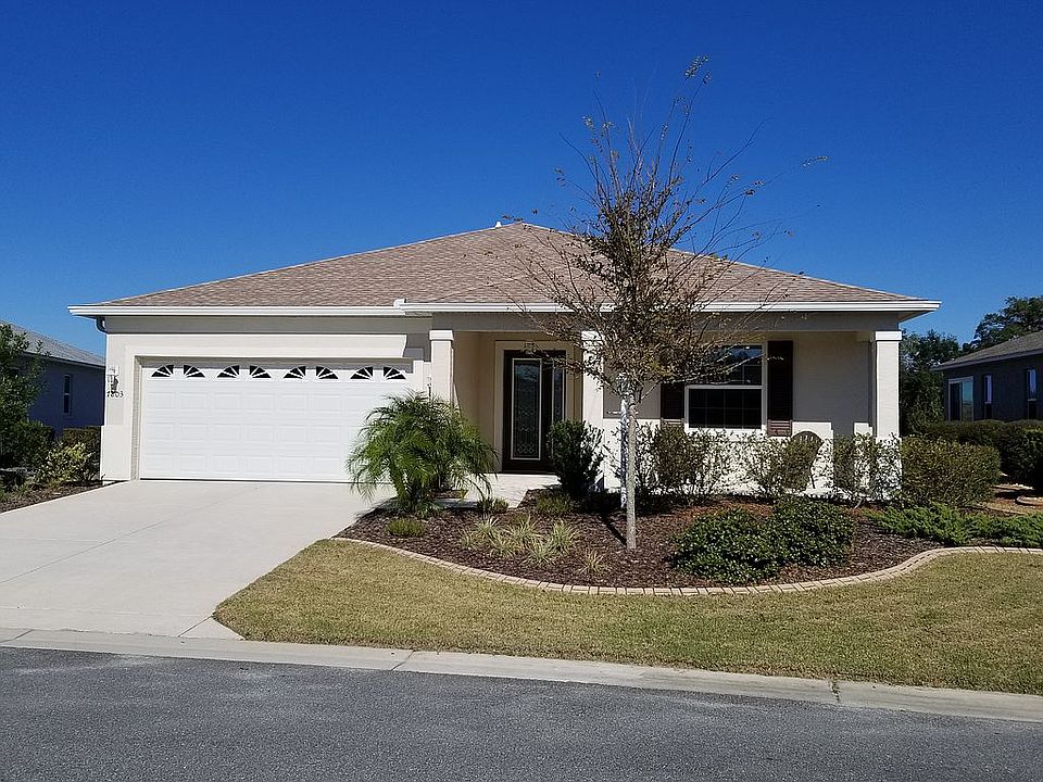 Beautiful 2 bed, 2 bath home plus a flex room, modern kitchen with granite and stainless steel and 12 foot island. Many upgrades with screened lanai located on a beautiful lot with no homes directly behind for awesome privacy. Instead, it has a retention pond with mature foliage and nice view. Very efficient utilities and has sprinkler system. Crown molding, tile in all rooms but the two bedrooms which have upgraded carpet, oil rubbed bronze fixtures throughout, extra recessed lighting and ceiling fans in flex room, living room, lanai, both bedrooms and even the master bath. Nicely landscaped with decorative curbing and recently added gutters and downspouts. 2 car garage has a 2 foot extension and will fit full size truck. Looks brand new and is move in ready.
