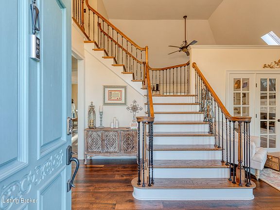 Situated on a private lot in the desirable Wolf Creek neighborhood, this beautifully updated home features gorgeous finishes and an open layout for entertaining. The inviting curb appeal is highlighted by the recently replaced windows, siding, gutters, and professional landscaping. Once inside, prepare to be impressed by the soaring vaulted ceilings and stunning staircase with metal railings. The foyer is flanked on either side by the formal dining and living rooms. French doors frame the opening from the living room to the spacious great room with a gas fireplace, built-in bookcases, and lots of natural light. It adjoins both a screened-in porch that overlooks the rear yard, as well as the chef's kitchen. The remodeled kitchen includes granite countertops, stainless steel appliances, a coffee station, large center island, and a breakfast nook. Throughout this floor, you'll find gorgeous replacement hardwood flooring, including in the first floor primary suite! This bedroom boasts a spacious walk-in closet and an incredible primary bathroom with dual sinks, large shower, and a copper tub. A powder room, laundry room, and attached 2.5 car garage complete this level. Upstairs, you'll find three bedrooms, each with replacement carpeting, and two full bathrooms. One of these bedrooms is a bedroom suite. The basement affords a new buyer endless opportunities! Currently, there is a large, light-filled home office as well as plenty of additional space that can easily be transformed into more living area. The private yard with patio and invisible fence overlooks a large wooded area. With nothing to do but move right in, this house is the perfect place to call home!