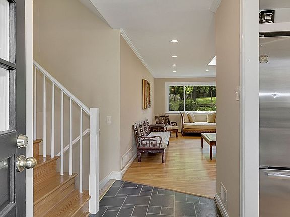Rarely-available 4-bed, 2.5-bath Bethesda single-family home with 2-car garage in sought-after Charred Oak Estates! Over 3000 sq ft. Large windows and skylights flood this home with natural light, highlighting the gorgeous hardwood floors throughout the main and bedroom levels. Gourmet kitchen boasts JennAir fridge, 5-burner KitchenAid cooktop, wall oven/microwave combo, granite countertops, backsplash, and loads of cabinet space. Enjoy your morning coffee in the adjacent eat-in breakfast area. Formal dining room opens to large living room with tranquil tree-lined views. Relax in the owner's suite with custom-shelved walk-in closet and renovated spa-like ensuite bath (2014), offering dual-sink vanity, upgraded tile flooring and luxurious dual-head tiled walk-in shower. Two additional spacious bedrooms and full bath complete the upper level. Cozy up by the wood-burning fireplace in the family room with convenient walk-out access to rear patio or take advantage of the bonus 4th bedroom with adjacent powder room, perfect for in-home office, long-term guests or au pair! Lower level rec room is ideally-situated for a movie night, Peloton class or potential 5th bedroom/den with plenty of extra storage. The stunning yard (over 1/3 ac) with professionally-manicured lawn, large patio, swing set and serene views provide the optimal backdrop for summer BBQs and creating memories for a lifetime. Expanded driveway and 2-car garage provide off-street parking for 7+ cars. Upgrades galore include new Certainteed roof and gutters (2018), new HardiePlank siding (2019), several new windows (2019), recessed lights, surround sound, solid-core upper level doors (2015), refinished laundry room (2014), water heater (2015), and exterior AC unit (2019). Easy access to Seven Locks Rd, 495, River Rd, and 270. Just minutes to Bethesda Co-Op Market, Balduccis, Montgomery Mall, Cabin John hiking trails, swim/golf/tennis, Glen Echo and all that downtown Bethesda and DC have to offer! Seven Locks ES, Cabin John MS and Winston Churchill HS district. Don't miss this!