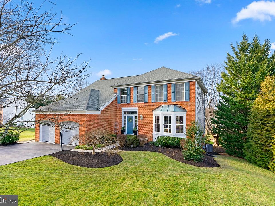 Stately brick front colonial set on a quiet cul-de-sac in Rockburn Township offering a 2-story foyer with upper level retractible blinds and remotes for the foyer windows, a bright living room with profile crown moldings and a bay window, and a formal dining room offering French barn doors, hardwoods, and chair rail trim. A warm glow introduces the family room showcasing a crisp white mantel surrounding a brick gas fireplace, a bay window, an adjacent laundry and mud room, and a step up to the kitchen. Ceramic tile flooring invites you into the eat-in kitchen equipped with granite counters, subway tile backsplash, classic white cabinetry, stainless steel appliances, a center island with breakfast bar, and an open breakfast room with a sliding door walkout to the deck. Owner's suite presents a vaulted ceiling with a drop fan, a walk-in closet, bay architecture with a brilliant bay window, and a renovated bath showing a double bowl vanity, a frameless glass shower, and a standalone tub. Additional room for entertaining is provided in the lower level touting a rec room with a wet bar kitchenette, a games area, a home theater, a bonus room, extra storage, and a walkout to the flagstone patio, pond feature, and backyard.