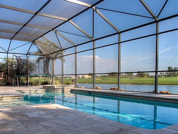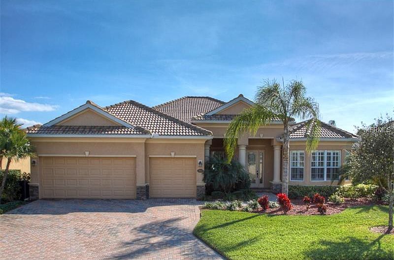 $30K Price reduction!!!! River Strand - This amazing 4/5 bedroom 3 bathroom Sawgrass model offers tranquility and refinement. The home is set on one of the best lots in River Strand affording sunset views over a large lake and the golf course. Upgrades galore, including extended granite counter tops, upgraded floor coverings, hardwood floor in the den, water softener and recessed lightning in the lanai. The spacious Master Suite is complete with a large sitting area, two closets, and a Luxury Bath Suite. The gourmet kitchen boasts granite counter tops 42" cabinetry and upgraded appliances. Additional features of this home include Bose surround sound, security system, central vacuum system, surge protector, and laundry room cabinets and sink. The lanai area has been extended and offers an outdoor kitchen, sun deck, and custom built pool and spa. River Strand at Heritage Harbour is a highly sought after gated golf community that features outstanding recreational facilities, including unlimited golf and tennis privileges, fine dining and a bar, gate attendants, swimming pools, fitness center, and lake and preserve areas.