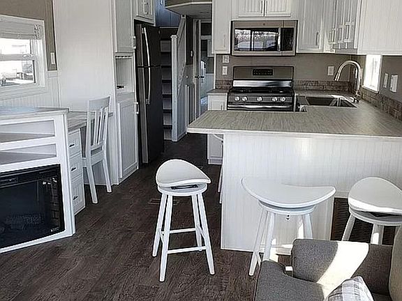 Here is your summer vacation location! Enjoy summer bonfires and endless fun on Lake Alexander! This property offers a newer built (2019) park model Islander Breeze with a modern interior with extra sleep space in upper bunk area; fireplace; patio; side deck; 12x12 storage shed and most appliances and furniture included. Association shared amenities include: 400ft of white sand beach on Lake Alexander with boat slip; clubhouse for gatherings; coin laundry; playground; snow removal and lawn care. Perfect location near other premier lakes, restaurants and golf course.