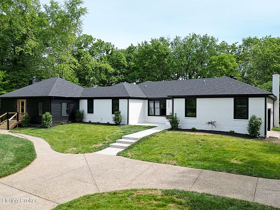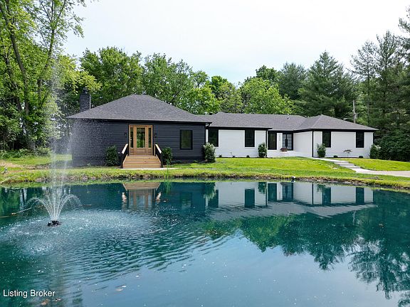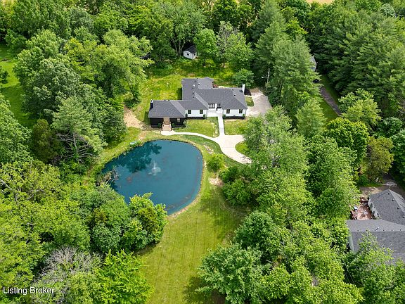 A private escape located in the heart of Crestwood, in highly sought-after Oldham County! This stunning ranch home sits on a private 2+ acres lot, long tree lined driveway, a large pond that is sure to make everyone feel like a good fisherman, a light up fountain that adds to the peacefulness of this property surrounded by mature trees, large flat backyard has an adorable out building and tucked in the back corner you will find a utility garage and small barn. The property backs up to the open fields. You can truly enjoy this gorgeous property from every corner. Inside this home you will find unique features and quality finishes! Enter the modern glass front doors to a large vaulted room that will be sure to draw you in. Framed with large windows all around this stunning light wide plank wood floors flow throughout most of the almost 4000 square feet. This 5 bedroom 4.5 bath home has so much to offer! An incredible layout, plenty of storage, 3 different living areas and ways to enjoy the outdoors all around. The stunning open kitchen has tall ceilings and gorgeous soft close cabinets, large drawers and a push door hidden walk in pantry. Professional Thermador appliances, Wi-Fi capable, with all the bells and whistles. Press on the door to open, the door didn't get shut all the way, don't worry- it will close itself. Want to preheat that oven on the way home from work, no problem! 84inch column refrigerator and freezer, 48inch 6 burner gas range top, massive 54inch hood with dual motors and an auto setting, wall oven and microwave, large working sink. Dining area and one step down to a cozy living room with large glass doors and a hypnotizing electric fireplace. The Laundry room is just off the garage and has a wall full of gorgeous cabinets, a window that views the driveway and cubbies for all the things! Half bathroom is in this area as well. Primary suite is tucked back behind the kitchen and has glass doors to the backyard with a small porch, a walk in closet and a stunning bathroom suite, a large double headed shower accented with stunning wood style tile, led light up cubby, separate water closet, large double vanity with wall to wall mirror, and a stand alone whirlpool tub with a built in heater for those long baths! Down the hall you will find 4 additional bedrooms. 3 of which have high quality soft and plush carpet as well as down the stairs to the unfinished basement. One of the additional 4 bedrooms has an en-suite bathroom with beautiful tile, and two closets. Another well appointed full bath that is full of character in the hallway near two additional bedrooms and down the hall you will find the 4th full bath and the 5th bedroom. The last room of the home is a massive great room full of dark wood bookshelves, glass door closets, and a fireplace. Two massive doors one leading to the front of the home to the pond and the other leading to a small deck with a serene view of the backyard. The backyard is perfect! Its surrounded by trees, flat as can be and spacious, add that pool - or don't! but the space is there. There is a cute mini building centrally located in the backyard that has a wall heating/cooling unit in it. Perfect for a home office, studio, or whatever you want to come up with! Behind that area you will find a garage that is perfect for your yard equipment and extra storage and then there is a barn!! This is a special place!! Bring your fishing poles, invite your friends and make new memories! Improvements at this gem are virtually everything but some big ticket items include the roof 10/23, most windows, 2000 gal septic tank and additional lateral lines. Both HVAC systems have been serviced. 220 electric in the garage, ready for your equipment or maybe your electric car charger!