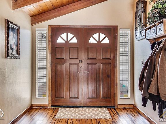 Marvelous home in sought after Northwest location! Famous open great room set up with high wood-beamed ceilings with brick fireplace, formal dining with bay windows over-looking the amazing backyard. Delightful kitchen with granite counters, stainless appliances, island plus glass tile backsplash. Large master en-suite with dual sinks, outdoor access, separate shower and soaking tub. Stranded Bamboo flooring throughout most of the house that will leave you breathless! Lush backyard with sparkling pool, covered patio plus more room to entertain! Don't worry about the hot summer days! The owned solar system will keep your utilities down! Must see!