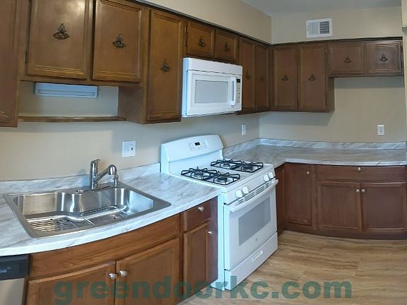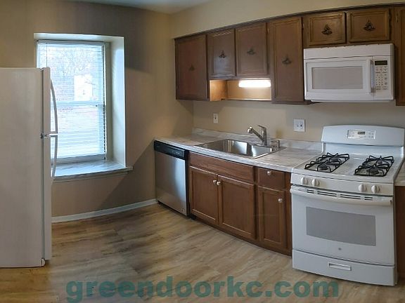 Spacous fully renovated 4 bedroom, 2 bathroom duplex located near a park, shopping, and hwy access. Less than 2 miles from downtown Overland Park Farmer's market with easy access to Hwy 35 and Hwy 69. There are two bedrooms and one bathroom upstairs, with two bedrooms and a bathroom downstairs. A deep garage provides all the storage you need. The spacious living room has high a ceiling for an open feel. There are no add-on fees, you pay rent and utilities only. Upgraded energy efficient fixtures and appliances keep your electric bill low. Mowing service provided for free. For more information, or to apply, visit greendoorkc.com Vouchers not accepted. Open house Saturday February 8 from 11am to 12:30. Please stop in and look.