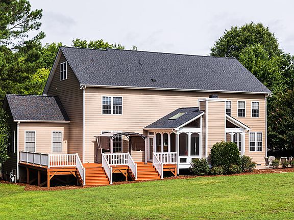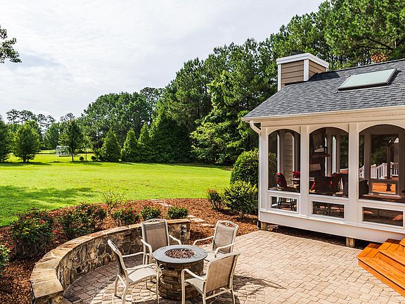 Nestled on 1.15 acres in one of Apex's most coveted neighborhoods, this stately brick-front home exudes elegance and superior craftsmanship. Featuring an Imperial Staircase hardwood floors and extensive millwork throughout, this residence is designed for entertaining. Chef's kitchen with abundant counter space, the lavish home theater is perfect for private screenings, while the enchanting three-season room with its stone-covered fireplace and skylights offers year-round enjoyment. The stone patio, complete with a fire pit, is ideal for intimate gatherings. Wrap-around deck provides a picturesque setting for alfresco dining and relaxation. Generously sized rooms and abundant storage, this home embodies the pinnacle of refined living; ''The Peak of Good Living''.