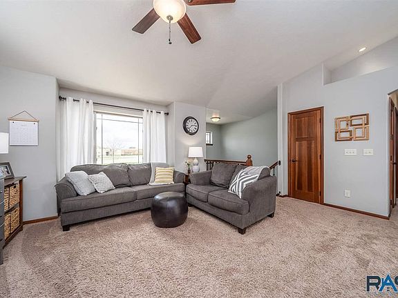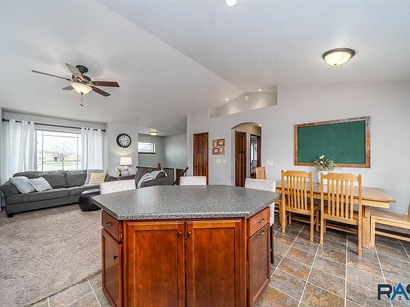 Stunning home on the westside of Sioux Falls just across from Pettigrew Elementary. Property features soaring vaulted ceiling in the living room; which is open to the kitchen including stainless steel appliances, an island for seating & storage. Dining room is open to the kitchen w/a sliding door opening to a Huge 2-tiered deck. Master bedroom has 2 double closets & a tray ceiling, 2nd bedroom has double closet w/organizers. Also, on the main is a full bath & some great storage options. Foyer is spacious & includes a coat closet. Lower level features a Spacious family room & a door to storage room. There is a 3rd bedroom in the lower level w/double closet & organizers, a full bath featuring a soaking tub, slate shower surround & flooring. 3-stall heated garage is insulated & finished w/a sink including Hot & Cold water. Yard is Spacious w/privacy fenced yard, underground sprinkler system, patio, firepit & landscaping.
