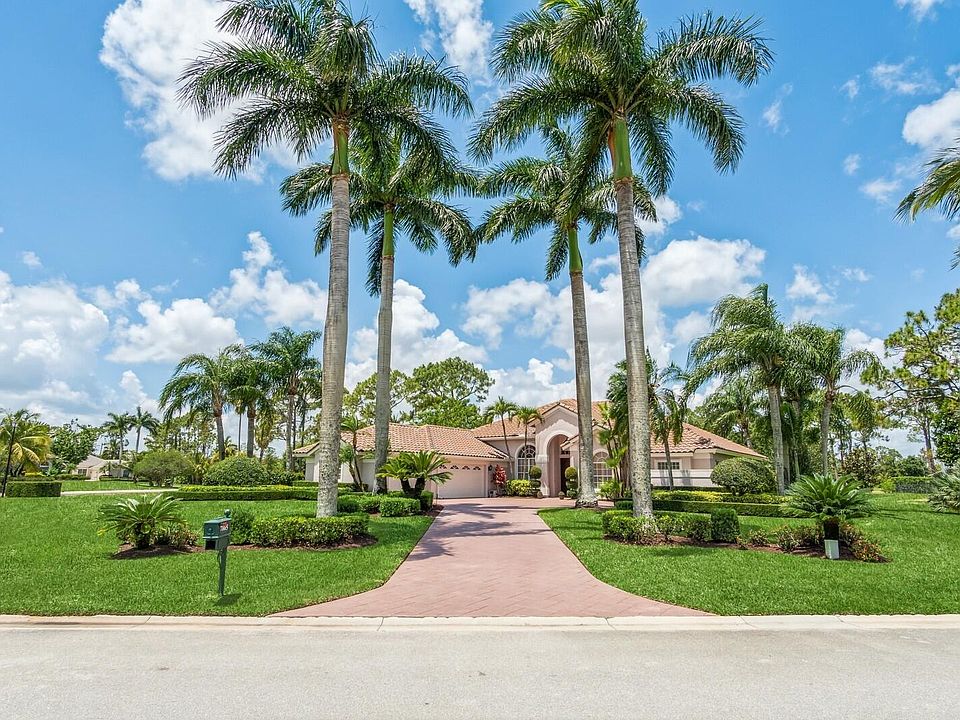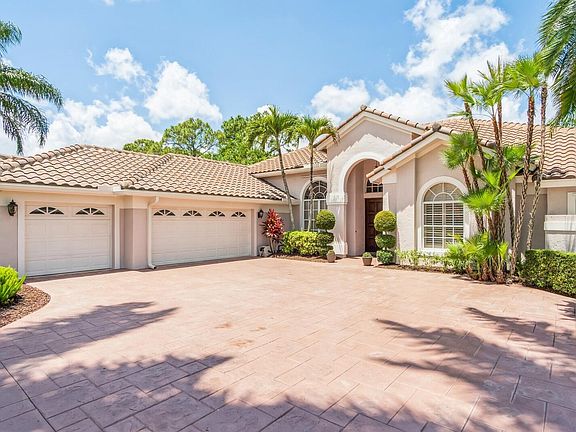Excellent floor plan: 3/3 with Den, 3 Car Garage, great curb appeal, extensive professional landscape, 1 acre lot, stamped concrete driveway/patio, view of 16th green Estates course (membership voluntary PGA), 24 hour manned gate, irrigation well, new roof 2017; 9,10,12 & 13.5 ceilings, Low HOA fee! New Publix, Walgreens & Retail, proposed school, offices, firehouse, hospital, health park.