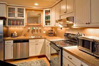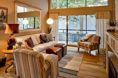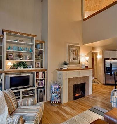 REMODELED END UNIT Sunny primo end unit fully remodeled and professionally designed and upgraded. Hardwood floors, tile entry & baths, rich Berber carpeting, 2 private decks, Kohler fixtures, gorgeous custom cabinetry, granite countertops. Stainless steel appliance package, electric fireplace. T&G open beam vaulted ceilings, built in library wall and more.