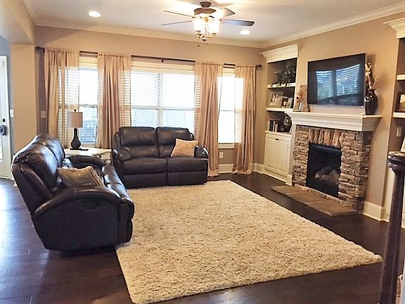 Gorgeous 5 bed 4 bath 3 car garage home in sought out Hollister estate subdivision on over half acre fenced in yard with pool, stone fire pit and privacy landscape. 5th bed can also be used as media room that lays over 3 car garage. The room is HUGE and has surround sound built in. Living area has stone fireplace. Added a roof to deck for a lovely entertaining outdoor space wired for TV. Home is all brick with large yard. Gorgeous upgraded hardwoods throughout, SS appliances and gourmet kitchen. Large closets in bedrooms. Master has wrap around walk in. Office on main floor. Award winning Silverado floorplan. Home is must see!