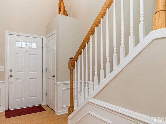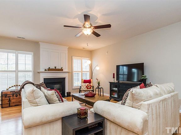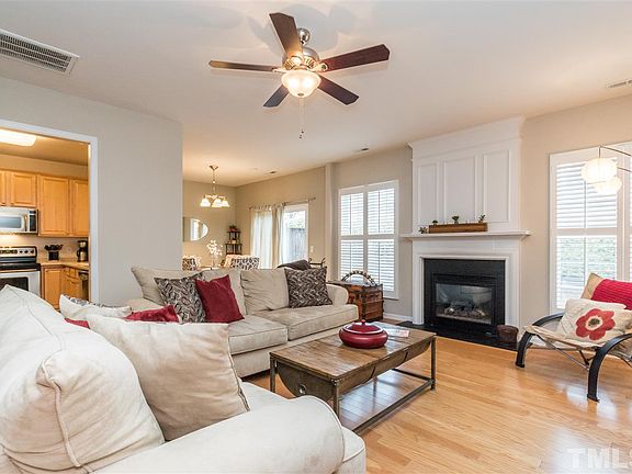 Well maintained home in desirable location close to shopping, RTP and within the Leesville school district! Hardwood floors on first level. Large kitchen with 42" cabinets, solid surface counters, stainless steel appliances and plenty of storage. Gas log fireplace in living room. Vaulted ceilings in master bedroom. Master bathroom has dual vanities, separate tub/shower and walk in closet. Private outdoor patio for entertaining. Great community with lots of amenities and activities for the whole family.