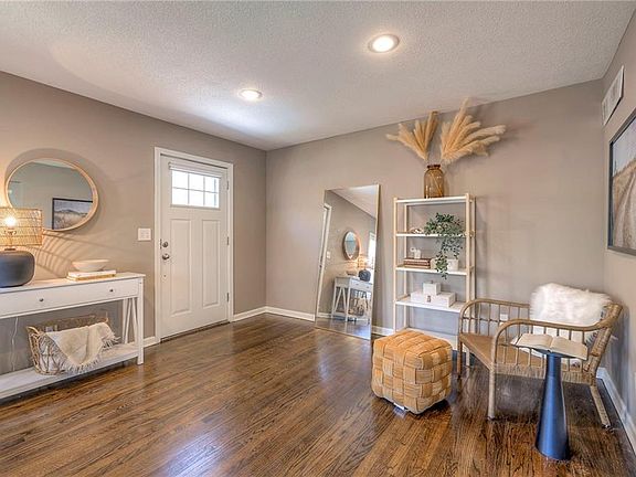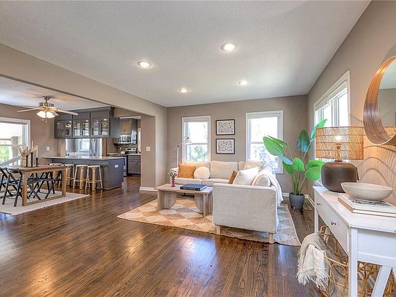 Get ready to be wowed by this incredible turn-key three-bedroom, one-bath, 1.5-story home with a detached garage! Nestled on a desirable 1/3-acre corner lot, this home is an entertainer's dream, inside and out. Be greeted by gorgeous refinished hardwood floors that flow throughout the entire house. The freshly painted interior, can lighting, and newer windows flood the space with beautiful natural light, creating an open, airy atmosphere. The kitchen is a chef's kiss and features custom cabinetry, granite countertops, stainless steel appliances, and a charming breakfast nook. Step outside onto the 18x15-foot back deck for the perfect spot for outdoor grilling, conveniently located off the formal dining room. The bathroom has been beautifully updated with a new vanity, counter-height granite tops, a tiled floor, and a tiled shower/tub combo. With two bedrooms on the main level and a third bedroom with an office or sitting area and built-in shelving on the second floor, there's plenty of space for everyone. The fully fenced yard is a gardener's paradise, with raised flower beds for growing fresh produce. Plus, you can have peace of mind knowing that the home features NEWER siding, a NEWER roof, and an unfinished basement provides laundry and storage opportunities. Located just minutes from downtown Overland Park, the farmers market, restaurants, and shops, this home is an absolute winner. Don't miss out - schedule your viewing today!