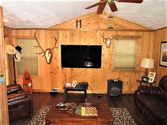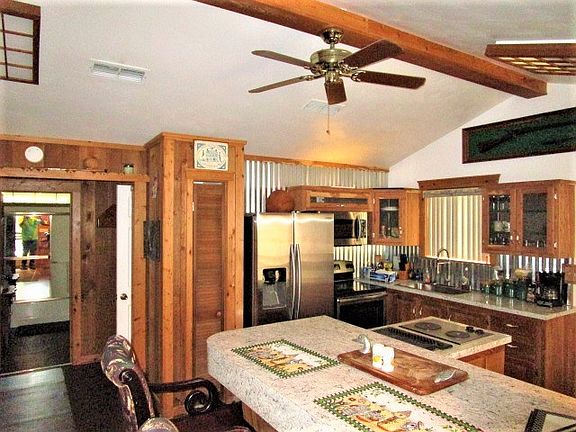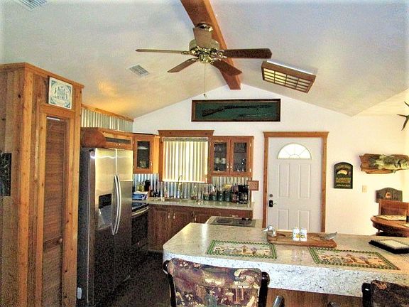 One of a kind property with its own concrete boat ramp. This property has all you could want in a get away place, 2 bedrooms and one full bath in main house with vaulted ceiling in the living room and an eat in kitchen with bar. The front porch is screened in and has view of Outside Lake. Below the main house is a large entertaining area with outdoor kitchen, bar and even an outside shower. There is outside seating for 26 at the main house. The separate small house with covered deck overlooking the water, a small screened in porch and front deck. The outside entertaining area has seating for about 20. The small house has brand new full bath, vaulted ceiling in living room and walls done in cedar. There is even a covered swing set close to the water where you can watch the fish. From the boat ramp the river is (if I were younger and stronger) a stones throw away. Don't miss this one time only chance to own a property on the water in Florida.
