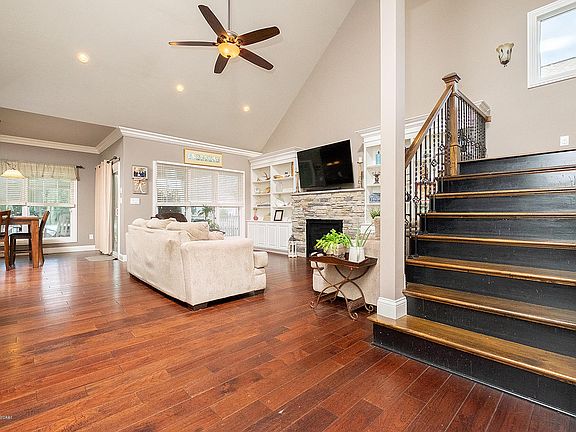Come see this beautiful custom-built 1 1/2 story home with open floor plan. Enjoy the sight lines from the kitchen with granite countertops and stainless steel appliances into the large great room with stone fireplace and built-ins as well as your eat-in area with access to a 24' screened porch. Continuing on the main floor is the master suite with its own private access to the porch, en suite bath with double vanity, tiled stand up shower, and jetted tub, as well as walk-in closet with access to the laundry room. A formal dining room and half bath are also on this level. Upstairs is an open loft area and two bedrooms. Both bedrooms have access to the bath with separate dressing area and walk-in closets. There's more...the finished basement has a living area, bedroom, and full bath!