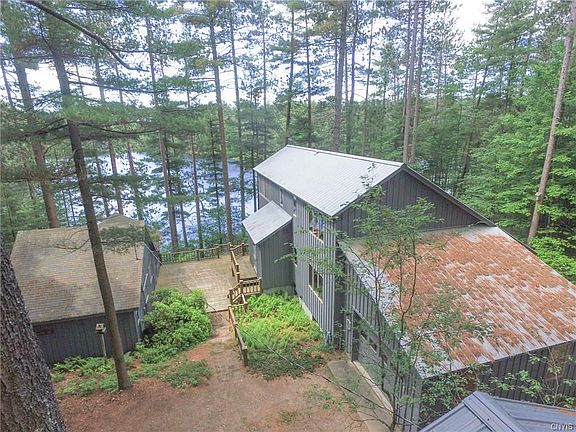 Peace, tranquility and room grow! Located on the private Chase Lake in the Adirondack Park, this 2 - 3 bedroom contemporary home comes complete with an attached single stall garage, detached double stall garage & separate two bedroom seasonal cottage! With 150' of frontage on Chase Lake, a non-motorized lake, there are beautiful views from two decks, two screen porches and a covered patio, complete with hot tub. The home's contemporary style keeps with the Adirondack theme with natural woodwork, cathedral ceilings in the living room and loft, hardwood flooring and extensive windows overlooking the water. One bedroom and one full bath are located on each of the upper levels and and additional bedroom/bonus room is located in the walkout basement. A beautiful improvement on a beautiful lake.