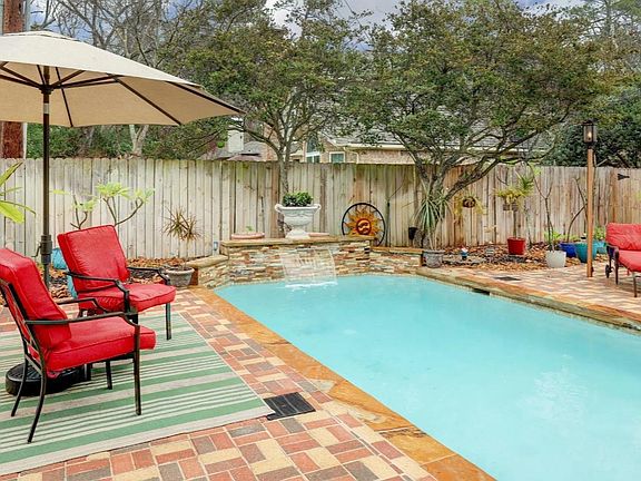 Step outside to your private fenced backyard oasis - a sparkling pool surrounded by a lush backyard with gazebo, perfect for soaking up the Texas sun or hosting gatherings.