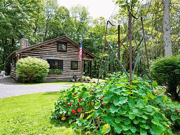 You can't help but be captivated and transformed the minute you pass through the gate. Whether you are seeking a year around home, writer's retreat, wildlife experience, photographer's paradise, x country skiing or weekend hunters getaway you will find all this and more just minutes from the village of Hamilton, home of Colgate University and within the Hamilton school district. There is a main cabin (726sqft w/ 2 bedrooms 1 bath) as well as a guest cottage ( 620sqft w/1 bedroom 1 bath), numerous walking/riding trails to explore. There is also a 3 box stall horse barn all situated on 28 acres plus two nature ponds. A golf course is located just down the hill if that suits your fancy. The options are endless, but the only thing missing is you. You can be part of a lovely small town in upstate NY.