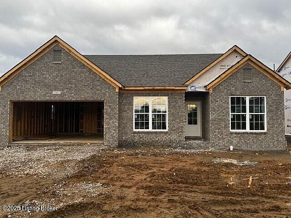 The Hampton Falls, part of the Trend Collection by Ball Homes, is an open layout ranch plan with three bedrooms, in a split bedroom style. The island kitchen offers both a dining area and countertop dining, and a storage pantry. A covered patio is available at the rear of the home, just off the share living spaces. The primary bedroom suite at the front of the home includes a large walk-in closet, spacious bath with tub/shower and linen storage. Bedrooms two and three are located off a semi-private hall at the other side of the home, with access to the second bath. A full-sized utility room completes the home. Exterior details include a covered entry and layered gable roof.