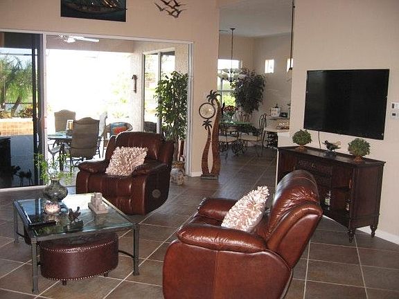 Unfurnished Annual Rental: This former model pool home is awesome! There are 1939 sq ft under air plus an additional 661 sq ft under roof. The floor plan is very open and includes a large great room with 12 foot ceilings and four sliding patio doors opening up to the lanai and pool area. The formal dining room has a tray ceiling and adjoins the great room. There is a large informal eating area or morning room off the kitchen with patio doors leading to the pool. There are two bedrooms plus a den which could be used as a bedroom. The master bedroom has a tray ceiling, a walk-in closet and patio doors leading to the pool area. The master bath has a large corner tub and a separate shower. The second bathroom has a tub and shower combination. The kitchen has cherry cabinets and new upgraded stainless steel appliances and level 4 granite. The laundry room is off the kitchen and has a newer washer and dryer. The designer pool is absolutely gorgeous (approximately 30 x 14) with a spa and a separate sun bathing platform. There is a lake behind the home, and the yard is very private. Lawn care, shrub/bush trimming, garbage, pool maintenance and basic cable are included in the rent. Madison Park is off Davis Blvd and 10 minutes from downtown Naples. The first month's rent plus a security deposit of $1150 is required after a successful background and credit check. Lawn care, shrub/bush trimming, garbage, pool maintenance and basic cable are included in the rent.