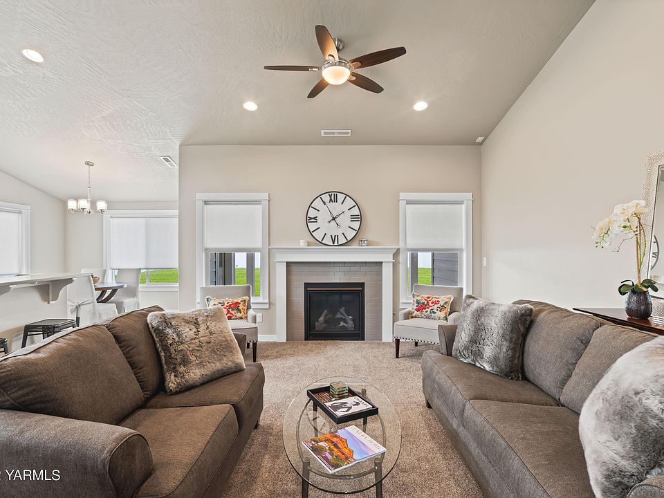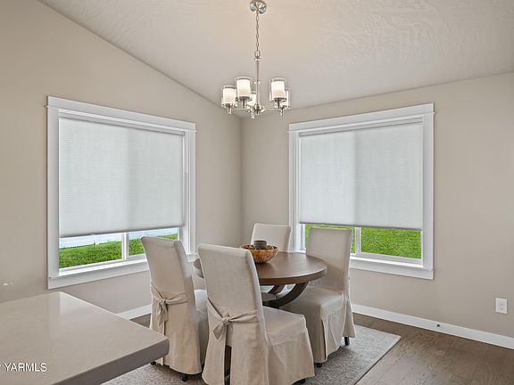 Exceptional West Valley home filled with upgrades. This better than new home features solid stone counter tops, expanded back splash detail, 4 inch trim molding throughout and custom high end black out blinds. So many great details have been thought of. Spacious three garage with shelving and room for all your toys and cars. Inside you will love the neutral color palette and vaulted ceilings. The large front living room is filled with natural light and boasts a gas fireplace too. The open concept kitchen with ample counter space and large walk in pantry make cooking and entertaining in this space a dream. Casual dining space off the kitchen with views of the expansive back patio is simply charming. Each of the bedrooms are spacious with large closet space and bright windows. The office is located just off the entry and features French doors and loads of windows, this can easily be a den too.The primary the bedroom is on the back of the home with large windows overlooking the fenced backyard and transom windows too. The en-suite is light and bright with beautiful tile details. This home has it all and is ready for the next owner.