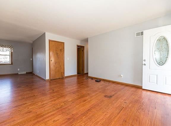 Check out this welcoming true ranch home that is move in ready! Spacious open floor plan with attic fan. Main level laundry. Washer and dryer included. Brand new kitchen with all new appliances staying. Large, carpeted bedrooms. Real hard wood floors throughout. Oversized basement with a bonus safe room. Storage shed and 2 car garage. You'll enjoy entertaining in the fenced backyard with a large new deck and a huge oversized firepit area.