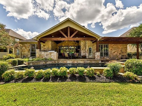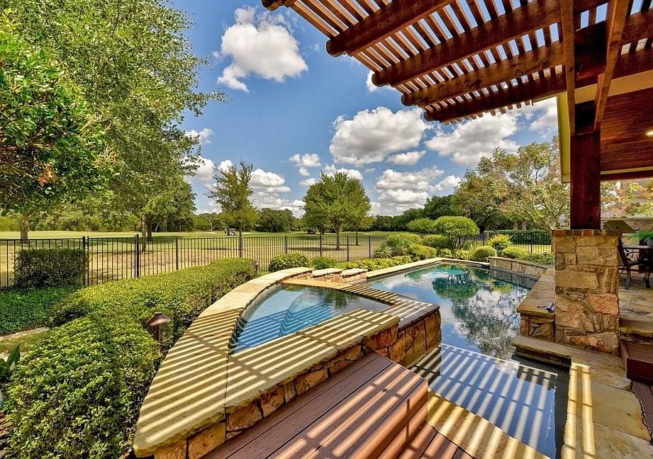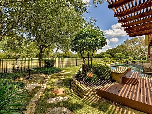 Gorgeous, large one story home backing to golf course in highly sought after & gated Muirfield at Circle C! Stunning views of the golf course! HUGE covered patio w/fireplace & built in kitchen! Pool & hot tub! 4 large bedrooms, large closets, gorgeous executive style study, huge media/game/tv room off living area. The gourmet kitchen has loads of counter & cabinet space! Beautiful shutters! Smart home package includes security cameras, four flat screen tvs! Owner/landlord pays for pool & lawn maintenance!