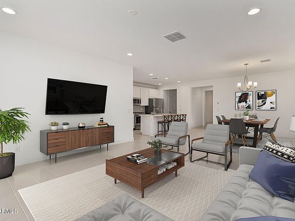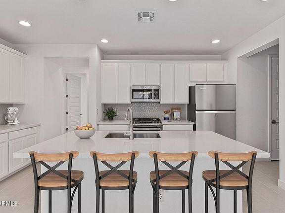 MLS# 6637376 February Completion! Introducing the Sapphire, a single-story floor plan featuring 1,970 sq. ft., 4 bedrooms, 3 bathrooms, and a 3-car tandem garage. Upon entering the foyer, you're seamlessly connected to the dining area, kitchen, and spacious great room, all with easy access to the outdoor living space—an ideal setting for entertaining. The kitchen invites you to prepare your favorite meals, the great room offers a cozy spot for coffee and reading, and the open layout is perfect for hosting gatherings with friends and family. Home includes washer, dryer and refrigerator! Design highlights include: Custom 2x5 tile backsplash in the kitchen, 42" upper cabinets in kitchen, quartz countertops in kitchen and bathrooms, soft water loop, and under cabinet LED tape light in kitchen.