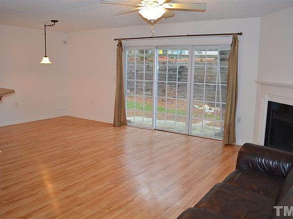 Bright and airy end unit townhome in a great location! Close to shopping, dining & entertainment and easy access to 540, the airport and RTP. Beautiful open kitchen with lots of counter space & cabinets plus a window seat & breakfast bar. Spacious living room with new carpet and dining room with laminate flooring and fireplace. Triple glass doors leading to the patio area bring in lots of natural light. Roomy master bedroom. Tile showers in both bathrooms. Community pool, gym & tennis.