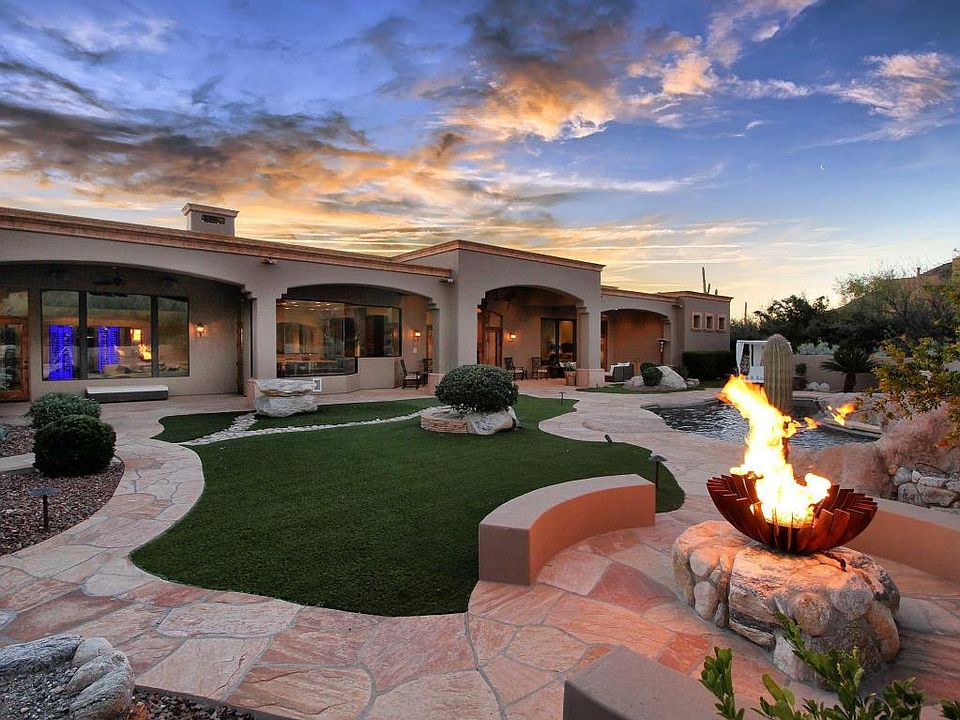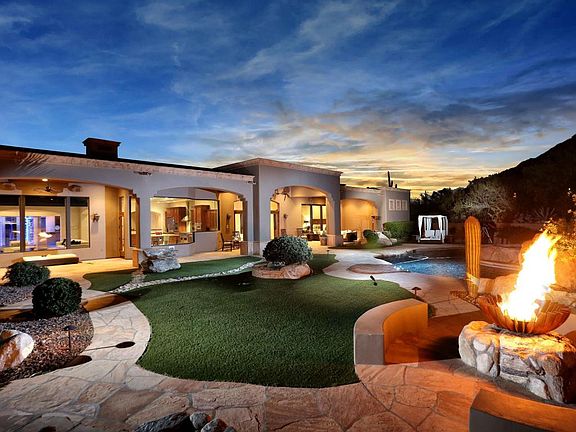 Located in Guarded/Gated Pima Canyon Estates against a backdrop of magnificent mountain views. 4bdrms plus office. Recent remodel exquisitely preformed by professional designer. Among the many new features is a newly opened up design allowing for great entertaining flow. New highlights include a strikingly visible contemporary wine rm, full bar, billiards rm, new hardwood floors, linear gas fireplace,& stunning metal firebowl w/sparkling eyecatching fireglass. Gourmet kitchen w/top of the line ss appliances & spectacular views. 4th bdrm has its own bath & walkin closet, private exit to pool & is currently serving as the billiards rm. Master Suite boasts its own exercise rm plus a private sitting rm w/its own fireplace in addition to the one located in the master bdrm.