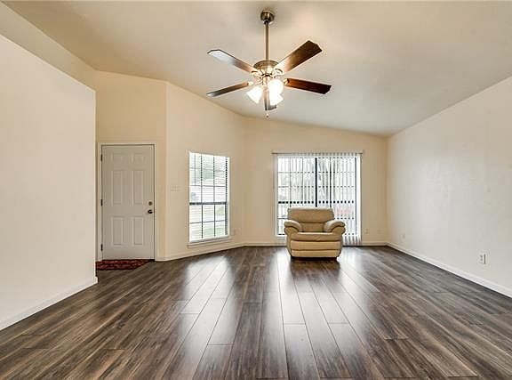 Beautifully remodeled and packed full of WOW! Freshly painted inside and out, this home is sure to impress with its open floor plan, tastefully updated flooring and brushed nickel light fixtures. Spacious living area is open to dining area and kitchen. Breakfast bar, granite counters, tons of cabinet space, stainless steel appliances and full sized utility room. Owner suite with large walk in closet, updated bathroom with tiled shower and bathtub combination. Secondary bedrooms are spacious and have ample walk in closet spaces. Linen closet in the hallway. Great back yard backing up to green space provides ample privacy for entertaining and play. Pride of ownership truly shines!