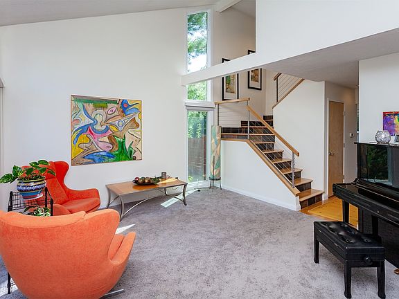 Discover the perfect blend of modern design and natural beauty! This stunning 2-story is located in an established neighborhood. Offering an extra large deck with NEW Hot Tub 2023, a peaceful wooded sitting, lots of privacy backing to a park and bike/walking trail. Wildlife gives this home a welcoming feel. The kitchen is timeless and functional with stainless steel appliances, white cabinets and maple wood floors. The dining and living room areas both open to the deck and a fully fenced in backyard. The main area also offers an inviting front entrance sitting room with gorgeous floor to ceiling windows and a beautiful modern staircase. Retreat upstairs to the large primary bedroom with a newly remodeled ensuite and walk in closet. 2 more additional bedrooms with 2nd bath. Newer HVAC, Roof - 6 yrs old. This home is truly a gem! Schedule your showing today!