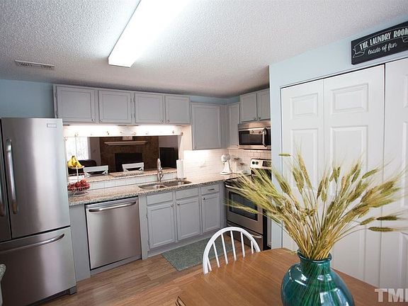 Location, Location, Location! This adorable 3 bedroom, end-unit townhome is just ONE BLOCK from Celebration Station and Peachtree Market on Six Forks! Walk to shops, dining, the gym and much more. Your home features new granite, new SS appliances, new subway tile backsplash & a new extended breakfast bar that reaches into the large family room. Carpet is barely two years old, new alarm system, new entry, fenced private yard backing to trees, ample side yard & 2 assigned, separate parking spots.