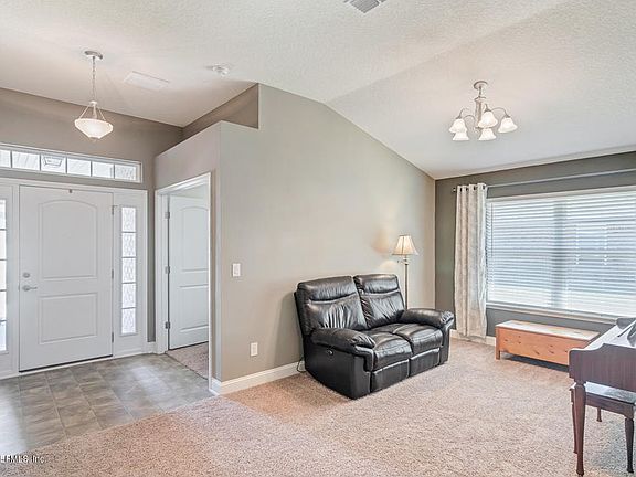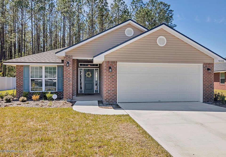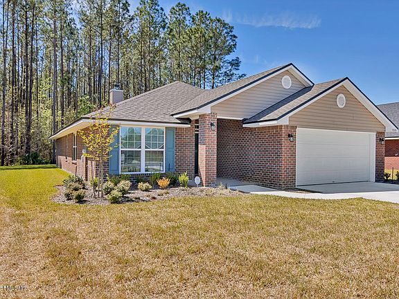 This wonderful full brick, fireplace home on a preserve lot is ready for you! Perfect for retirees, or young families! Custom designer paint. Blinds; This community is zoned for the new Wildlight Elementary School. Brick home with well utilized space in this four bedroom, two bath. Separate dining room, large kitchen with nook, huge great room w/wood burning fireplace for those cozy nights. Covered back patio w/beautiful private view, nice back yard that backs up to wooded area. Tile in Master Bath. Owners bath has separate shower, garden tub, two sinks. Ceiling fans in owners bedroom and great room. Secondary bedrooms are braced & prewired for ceiling fans. In the kitchen: stainless steel appliances: smooth top range, built in microwave, and dishwasher. Large kitchen pantry.