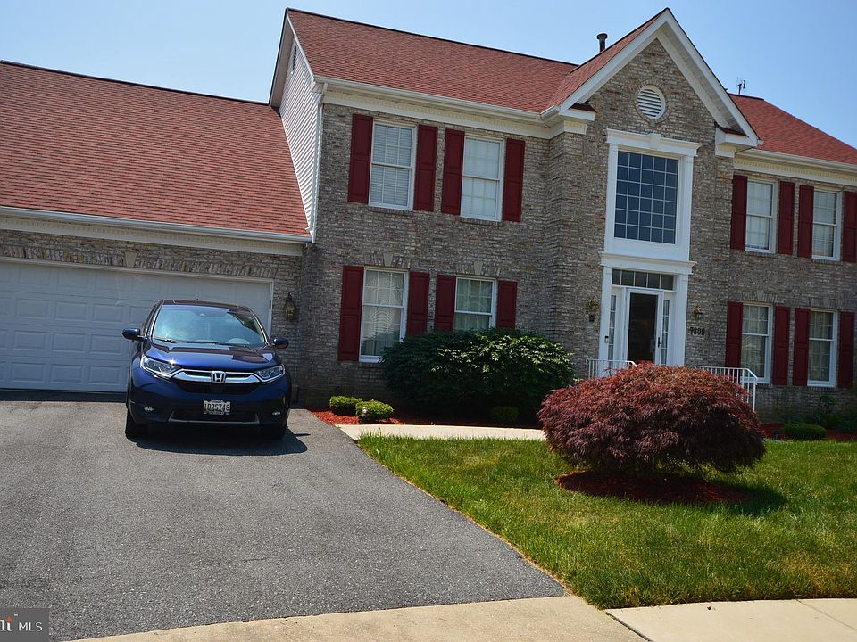 Open House CANCELLED. This beautiful brick Colonial is located on a quiet cul-de-sac. Well maintained, this single family home has an open floor plan, large walk-in closets and hardwood flooring throughout main level and master bedroom. Eat-in kitchen with granite countertops, stainless steel appliances, baker's rack and formal dining room. Family room with fireplace adjoins kitchen and leads to huge deck overlooking flat, fenced backyard. 2-car attached garage with parking pad for even more cars. Bedrooms are spacious and ensuite master bath has skylight, dual sinks, soaking tub and separate shower. No HOA!! Dryer does not convey.