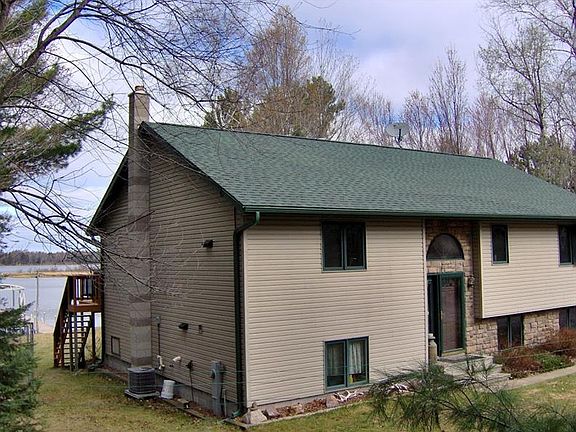 This is a beautiful home located on Chain Lake, part of the Sugar Camp Chain of 5 Lakes. The property has a list of features that just doesn't quit! Level sandy frontage, privacy, extra deep attached 2 car garage, finished walkout basement, lakeside deck, fieldstone wood burning fireplace, jacuzzi tub in the master bath, gorgeous lakeviews, blacktopped driveway and so much more! Want more? How about 9+ acres of land, a 28 x 42 heated shop with a 24 x 24 extra storage area. The list goes on and on. This is a great property that is priced to sell FAST! Take a look while you can!