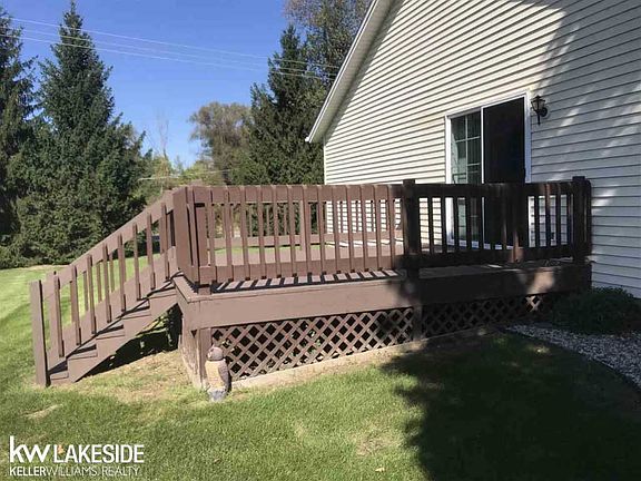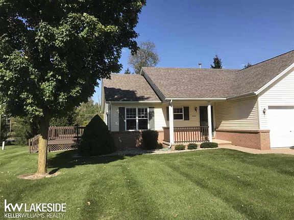 Ranch style 2 bedroom condo with attached garage and 1200 sq ft of living space. Large galley style oak kitchen with all appliances included. Vaulted ceiling in large family room, newer door wall to your own private deck. This is a end unit so no neighbors on deck side and a great view of the common area that has mature pine trees. Two large bedrooms with ample closet space and the master has a private entrance into an very large bathroom. Over sized hallways that are perfect for maneuvering around. Large laundry room with appliances and plenty of wall storage space. Newer water heater and central air unit. Large covered front porch. Pets are welcome but with restriction. This is a 55 yr and older complex (meaning 1 owner must be 55 that lives in unit). New roofs few years ago and a low association fee of $140 covering outside maintenance.