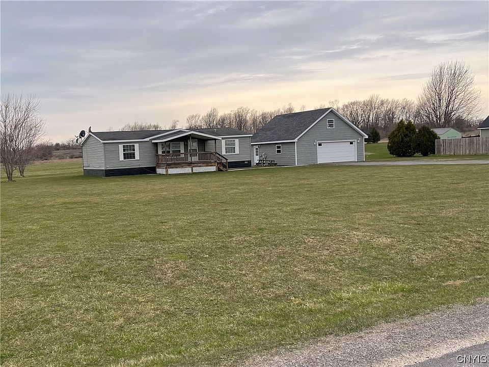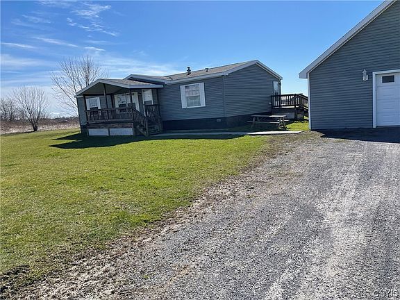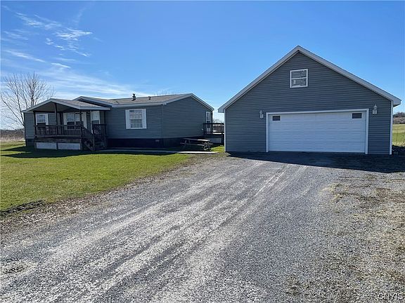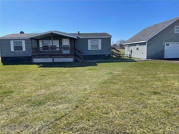Country living but close to Adams, Belleville and Ellisburg. You are kind of in the middle of it all so close to Rte 11 and I-81. 3 bedroom 2 bath Double wide manufactured home on 1.114 acres. Amazing detached 2 stall 2 story garage with the capabilities for generator hook up. 200 amp Circuit breaker service in garage and 100 amp service in mobile home. Open floor concept for living, dining and kitchen.