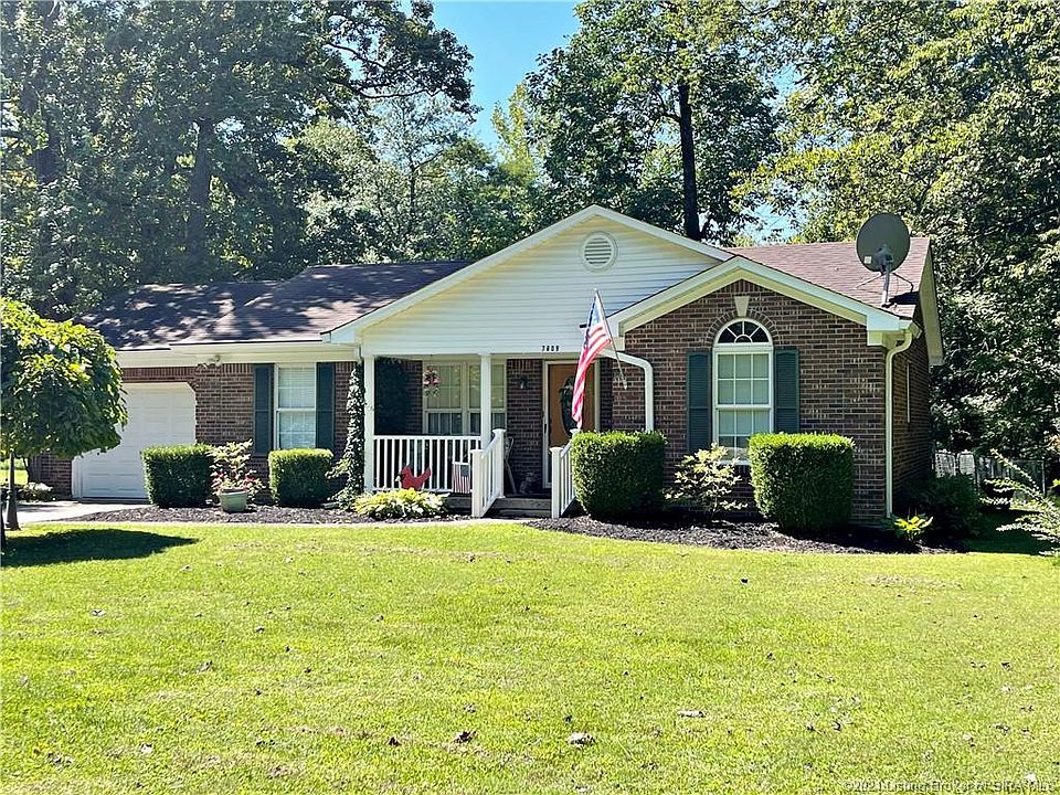Location! Location! You will love this All Brick, Low Maintenance Home in Sellersburg. Close to Highway access with a Private Wooded .79 Acre Lot. Features include Open Floor Plan with Split Bedrooms. Hardwood Floors in Main Areas & Hallway. The Kitchen Offers Appliances, New Lighting with Plenty of Cabinets and Counter Space. Updates include Roof approx. 7years old , HVAC approx. 10 years old. There is a nice Deck off the Kitchen overlooking a fenced in back yard with Woods beyond for lots of privacy. Inspections welcome but Selling AS-IS. Call today to view your next home.