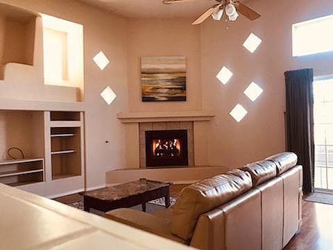 Come see this beautiful 4 bedroom house in the best area in Albuquerque!! It features: * La Cueva High School area * South facing house in a safe and friendly cul-de-sac * 3 car garage (oversized) * Low maintenance yard with automatic sprinklers * Beautiful courtyard (access from the main level master bedroom) * Super energy efficient * Two gas fire places (One in the main level master bedroom)! * Huge walk in closets * Built in office nook * Several fruit trees Tenant pays all utilities