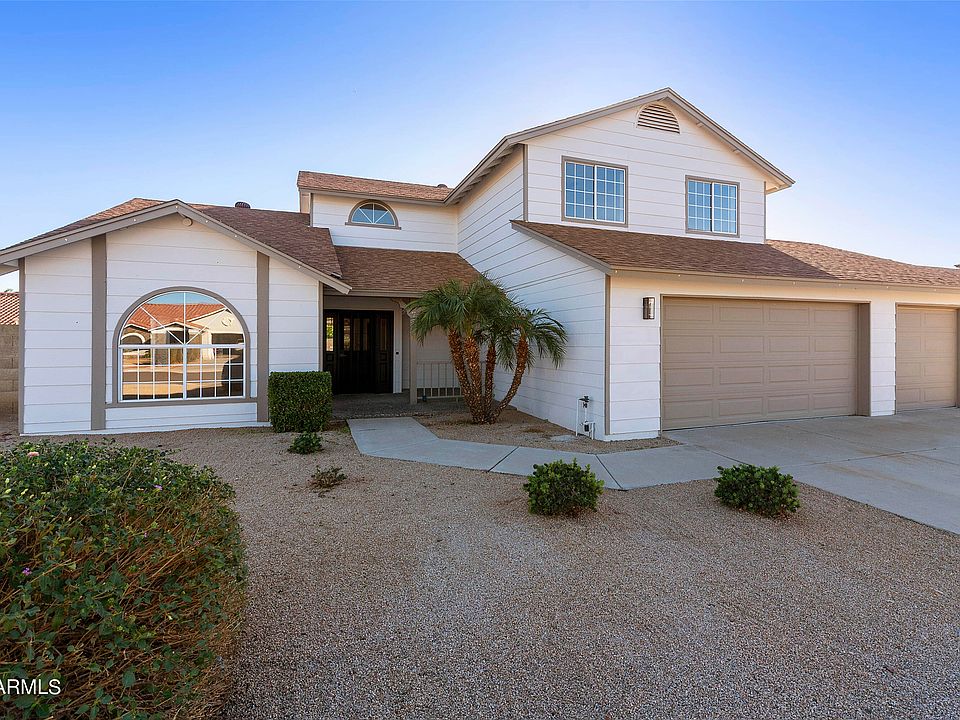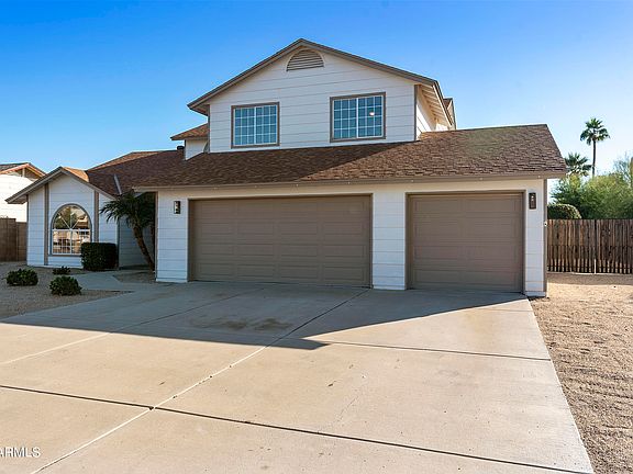 Beautiful 5 bedroom, 3 full bath home with 3 car garage on a large north/south facing lot. This home has been remodeled and is move in ready. Gorgeous kitchen with quartz counters and subway tile backsplash, new stainless steel appliances, new flooring and carpet throughout, formal living & dining, large family room with wood burning fireplace. Two bedrooms on the main level, 3 bedrooms upstairs. Master bedroom with large walk in closet and fantastic bath with separate shower and tub with double sinks. All this in a neighborhood with no HOA close to Peoria Sports Complex, P83, Westgate Entertainment District, & walkable to parks!