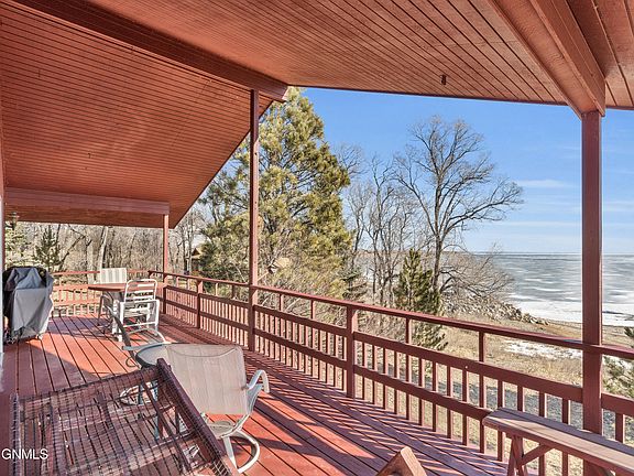 This home as a newer heating & cooling pump (in 2019) & can be a year-round home. The amazing cabin is surrounded by beautiful, mature trees! This is a one-in-a-million, lifetime opportunity to own this lake home with a stellar location available on the south shores of Lake Sakakawea near Pick City! You will appreciate this ranch-style home with a walk-out basement and the wrap-around deck with breathtaking views overlooking the lake! From the deck, enter the main-level and be awed by the views out of the picture windows with panoramic views of Lake Sakakawea and open floor plan with that rustic wood cabin vibe.