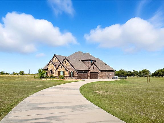 Buyers contingency sale fell through...property is back on the market. SUPERRRRRR NICE Custom 4-bedroom, 5-bath home on 5.2 acres. Enjoy this fully fenced and gated property with a tranquil pond onsite and no rear or side neighbors. Bright open floor plan with plantation shutters, crown molding, and panoramic windows. Gourmet kitchen features granite countertops, double ovens, gas cooktop, and large island, ideal for entertaining. All bedrooms are downstairs with ceiling fans and large walk-in closets; Every room has direct access to a bathroom. Upstairs is a 830 square feet game or media room with wet bar and half bath. The office has built-ins and French doors for privacy. Outside enjoy the huge screened-in covered living area with wood burning fireplace. Extras include CAT-5 Ethernet wiring, foam insulation, walk-in attic, 3-car garage, and workshop storage building. 3rd car garage is way oversized. Northwest ISD. NO HOA. Horses and chickens' welcome. YOU ARE GOING TO LOVE THIS ONE. Buyer and or buyers agent to verify all information
