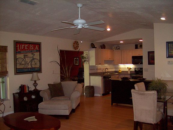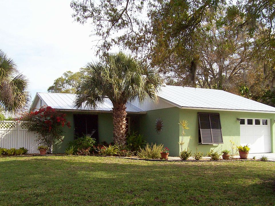 Key West meets Zen! Walk past the tropical landscaping into this Florida classic bungalow, 2 bed/2bath home with a large den, and feel the serenity of paradise. The open, airy floor plan allows for a sense of space and peace. Cathedral ceiling and wood floors grace the living and dining areas as it opens to the kitchen which boasts stainless steel appliances, recessed lighting, and a reverse osmosis system for drinking water and the ice-maker. The master bedroom, with new carpeting and a walk-in closet, sits opposite from the guest bedroom allowing for privacy. Light pours into the tiled den, as the double French doors expand to the covered, paved lanai. Calm will surround you as you sit outside on the built-in seating area, which includes a tiled bar, outside sink with alcove for an electrical beverage cooler. Enjoy your days with a maintenance free metal roof, Bahama shutters, and easily maintained landscaping, with an 8x10 shed for extra storage. The one car garage includes the washer and dryer and plenty of shelving space. Conveniently located near shopping, the Legacy bike trail and just a few miles to the beaches! This property won’t last long! Buyer agent commission offered. Showings by appt. Accepting cash or conventional offers with proof of funds or pre-qual letter. Email for more information redheiss1@yahoo.com or call 941-525-6805 for more information.