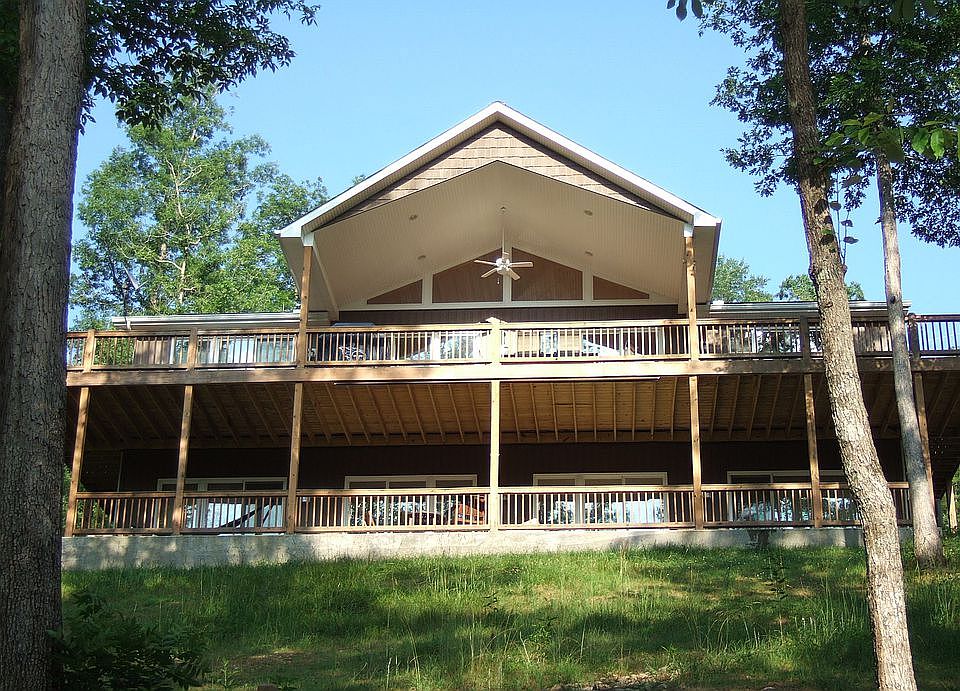 Beautiful lakefront home with an open floor plan, maple hardwood floors, with a wrap around deck that overlooks the private 2 slip covered dock. Concrete golf cart path down to the dock with turn-around.
