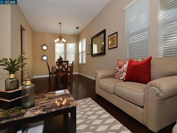 Beautifully appointed home features granite kitchen with gas cooktop and breakfast nook opens to family room. Family room features a gas insert fireplace and french door to backyard. Living room features formal dining area. 4 bedrooms, 3 full baths; 1 bedroom/full bath downstairs. Large master suite features a spa-like bath with soaking tub/separate shower, large walk-in closet. Dark bamboo flooring downstairs and carpet upstairs. Designer window coverings throughout. Finished backyard features mature landscaping and planter beds. Close to elementary schools, shopping, freeway access, Lawrence Livermore Lab, ACE train. Open Sat/Sun 1:30 to 4 pm. More photos coming soon