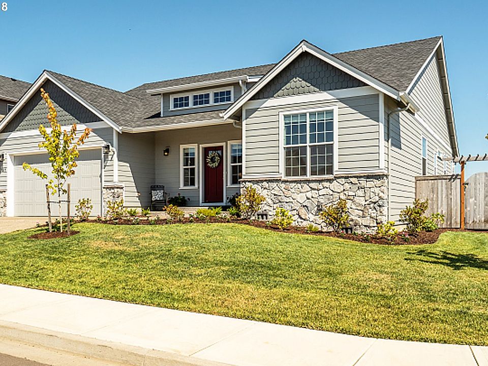 Stunning one level craftsman in highly sought after Carlton Crest. Daylight and upgrades flow throughout this one year old home, with 3 beds and an office. High ceilings with inset lighting, top level quartz counters, large island, laminate flooring, oversized laundry room and ample storage closets. Enjoy field views out the master bedroom and from your spa pad in the fully landscaped/irrigated yard with an extensive patio area.
