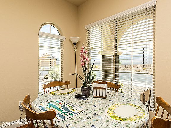 This popular Daisy model is located on a corner lot with a forever unobstructed view of the Virgin Mountains and the valley. Quiet location in Frontier Pass this home is move in ready. Kitchen has beautiful upgraded Cherry cabinetry with pull out drawers and corner Lazy Susan and upgrade laminate wood floor. Open living/ dining room. Like new carpet and tile through out. Shows like a new home. Large backyard with great views from the patio. Furnishings available for purchase with bill of sale.