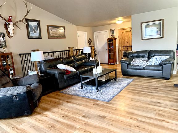 Spacious ranch style home with no neighbors right behind you! Five bedroom, 3 bath home with hickory cabinets and hickory flooring in kitchen/dining area. Roomy living room with vaulted ceiling, and gas log fireplace. Master bedroom/bath has jetted tub, separate tiled shower and tiled flooring, and walk-in closet. Main floor laundry, finished basement with large family room, 2 beds, 1 bath down with 2 additional rooms for office/den options. Fort Hall irrigation for inexpensive option to irrigate yard, vinyl fencing, fully insulated and finished 3-car garage and RV parking. Solar Panels make electric bill super reasonable!