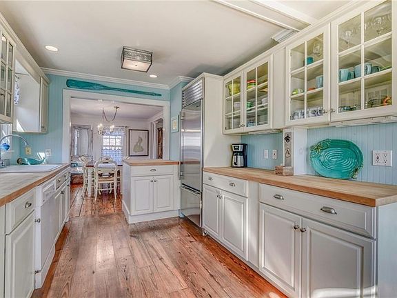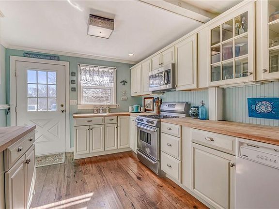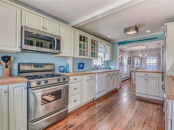 Circa 1880 picture perfect summer home, heated for all year living. Quintessential cottage style with 3 bedrooms, 1 bath house plus 2 accessory structures. Original hardwood floors throughout, crown molding, butcher block counter tops & fine kitchen cabinetry. & ocean views from the 2nd level. 2 acres of cleared land span in front of the house. Natural shrub & brush line form for privacy in the back & sides of property closest to house. Close proximity to Black Rock area offering access to the bluff beaches & miles of the most spectacular walking trails on the South side of the Island.