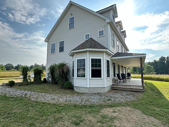 HEAD-TURNING COLONIAL! Introducing this unique 4-bedroom, 2.5-bathroom home. The first floor boasts concrete floors with radiant heat, a cozy wood stove, and a personal movie theater. The kitchen is equipped with stainless steel appliances and quartz countertops. On the second floor, you'll discover a spacious primary bedroom with en-suite bath and walk-in closet, along with three additional bedrooms and another bathroom. The walk-up attic space is thoughtfully prepped with power and plumbing for your future needs. Other amenities include a security system, central vac, and 9' ceilings. Outside you can sit on the front porch and enjoy scenic views of hills and pastures with stunning sunsets.